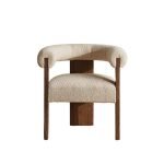 Beech Wood and bouclé fabric Arm Chair – Brown and Beige
