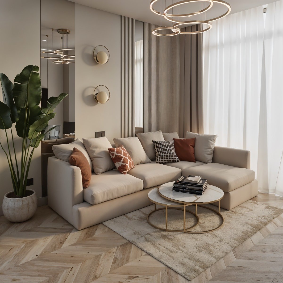 Beech Wood and Inverted leather Fabric L-Shape Sofa – Beige