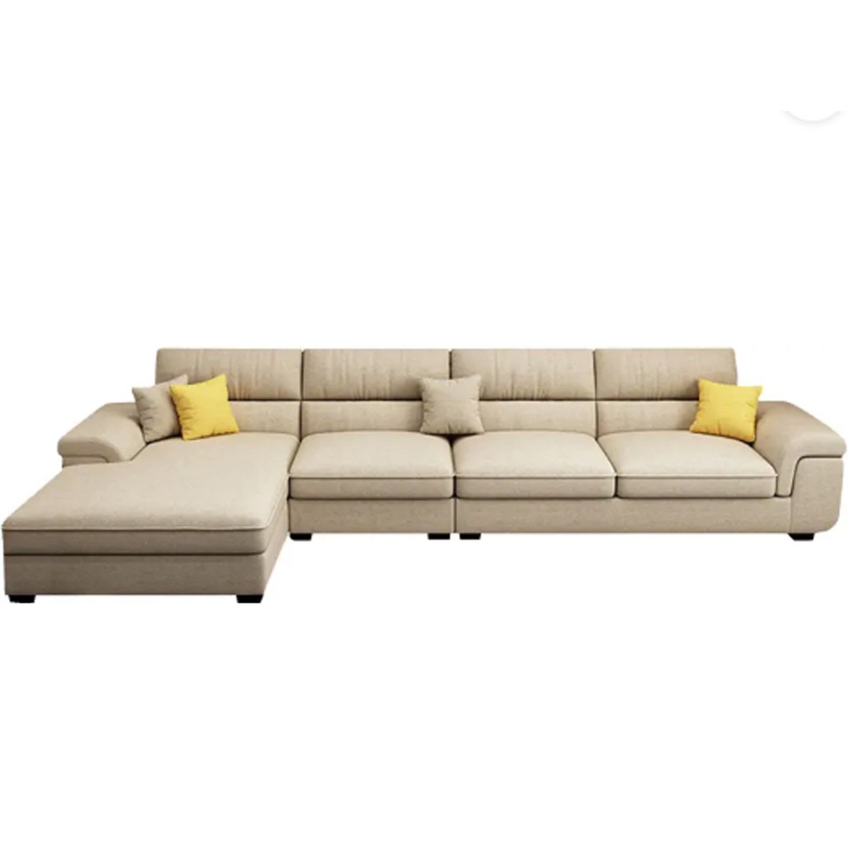 Beech Wood and Linen Fabric L-Shape Sofa – Beige
