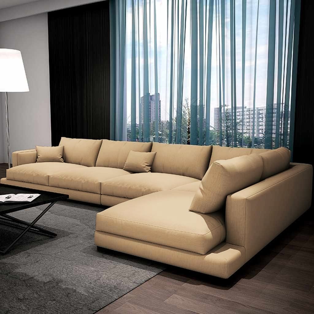 Beech Wood and Linen Fabric L-Shape Sofa – Beige