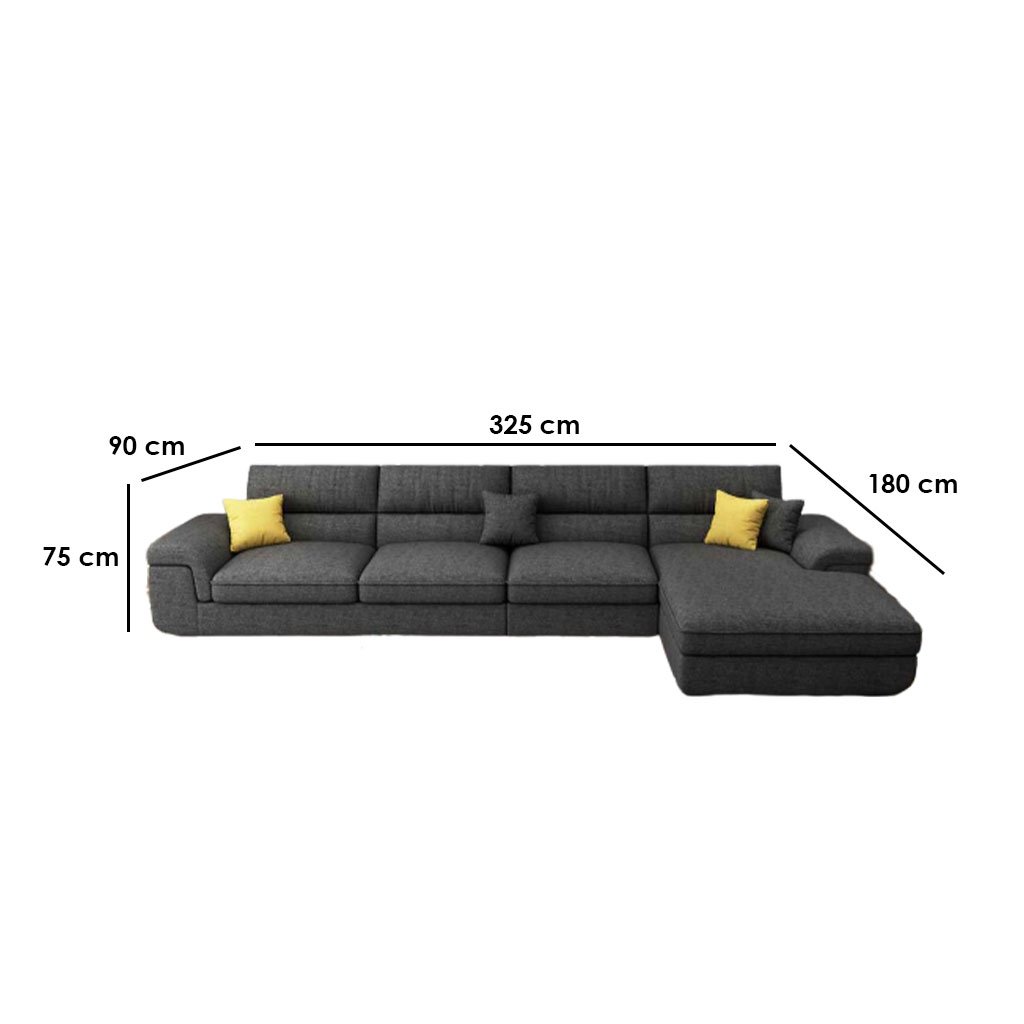 Beech Wood and Linen Fabric L-Shape Sofa – Grey