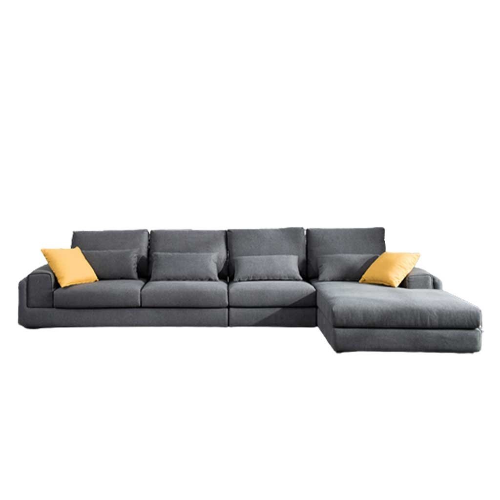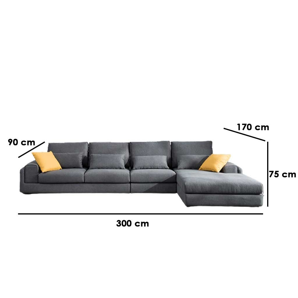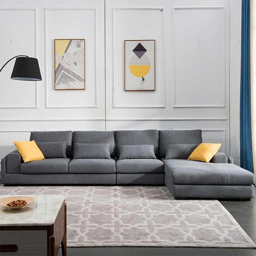 Beech Wood and Linen Fabric L-Shape Sofa – Grey