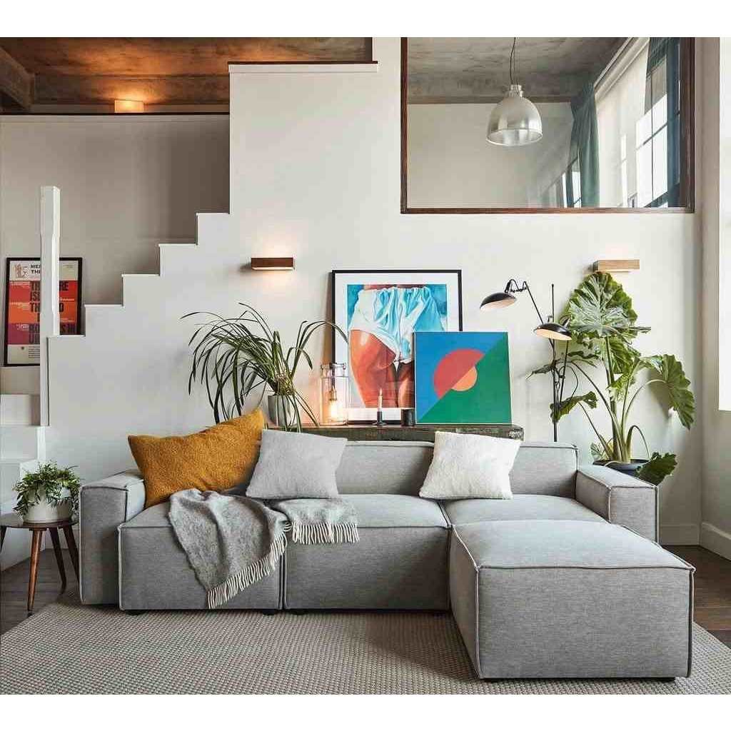 Beech Wood and Linen Fabric L-Shape Sofa – Grey