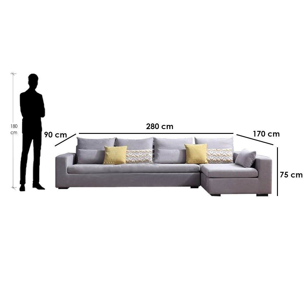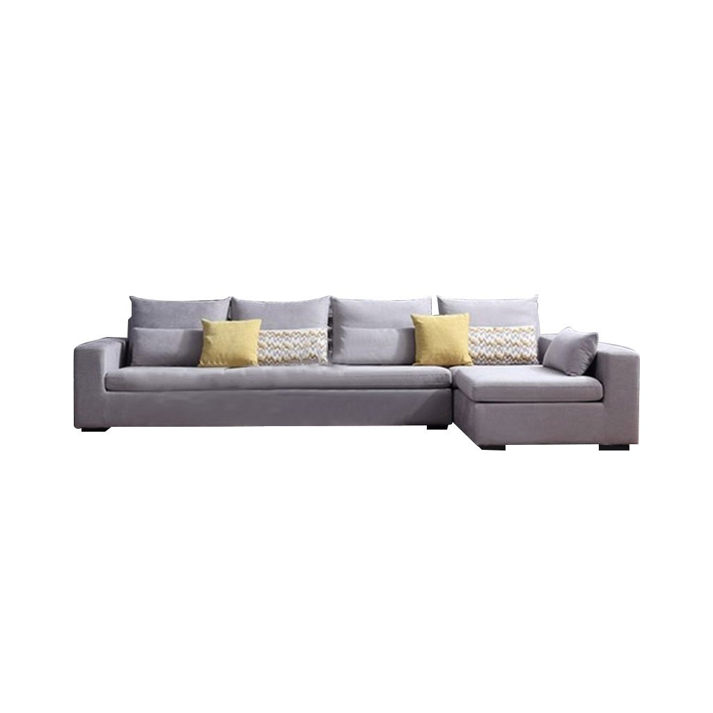 Beech Wood and Linen Fabric L-Shape Sofa – Grey