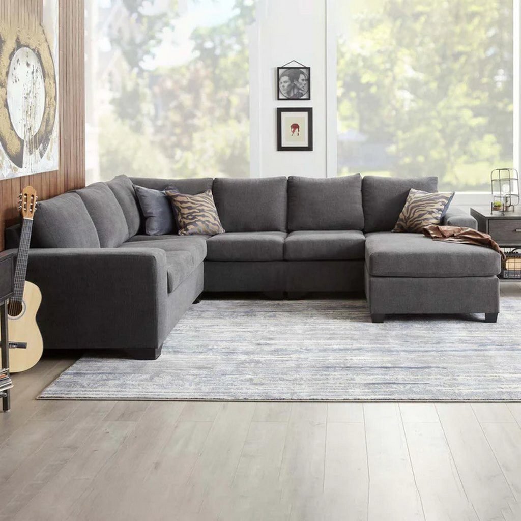 Beech Wood and Linen Fabric L-Shape Sofa - Grey