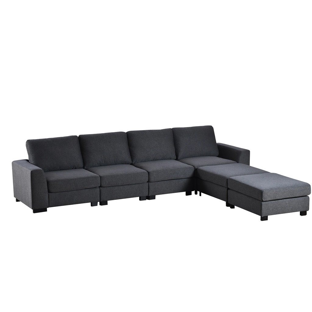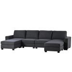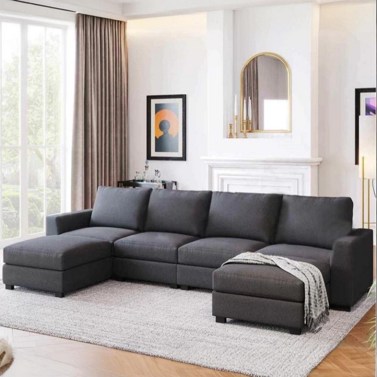 Natural Beech Wood and Velvet Fabric U-Shape Sofa - Grey