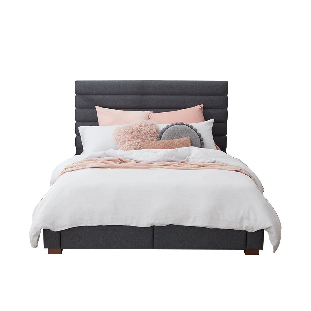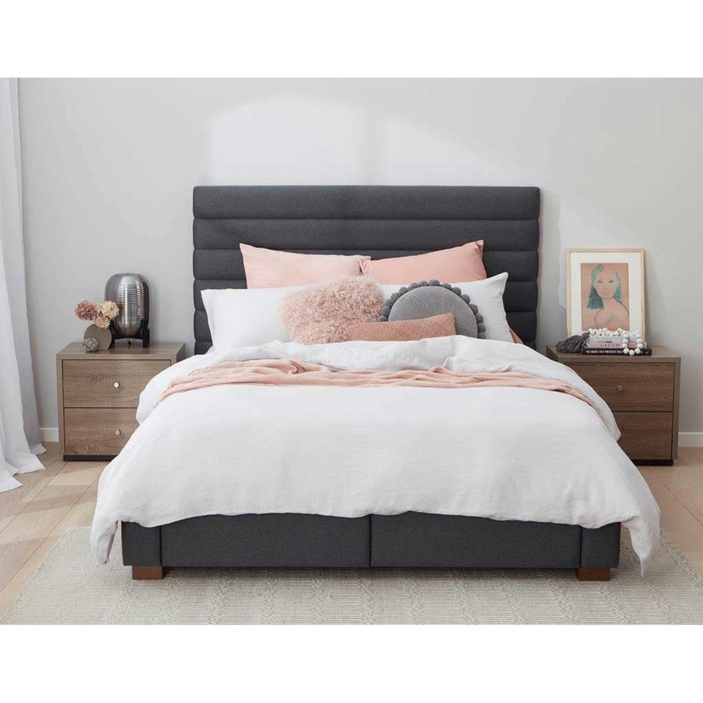Counter Wood and Linen Super King Bed 125x185x210 cm – Brown and Grey