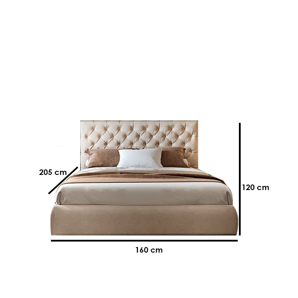 Counter Wood and Velvet Fabric King Button Tufted Bed 120x160x205 cm – Beige