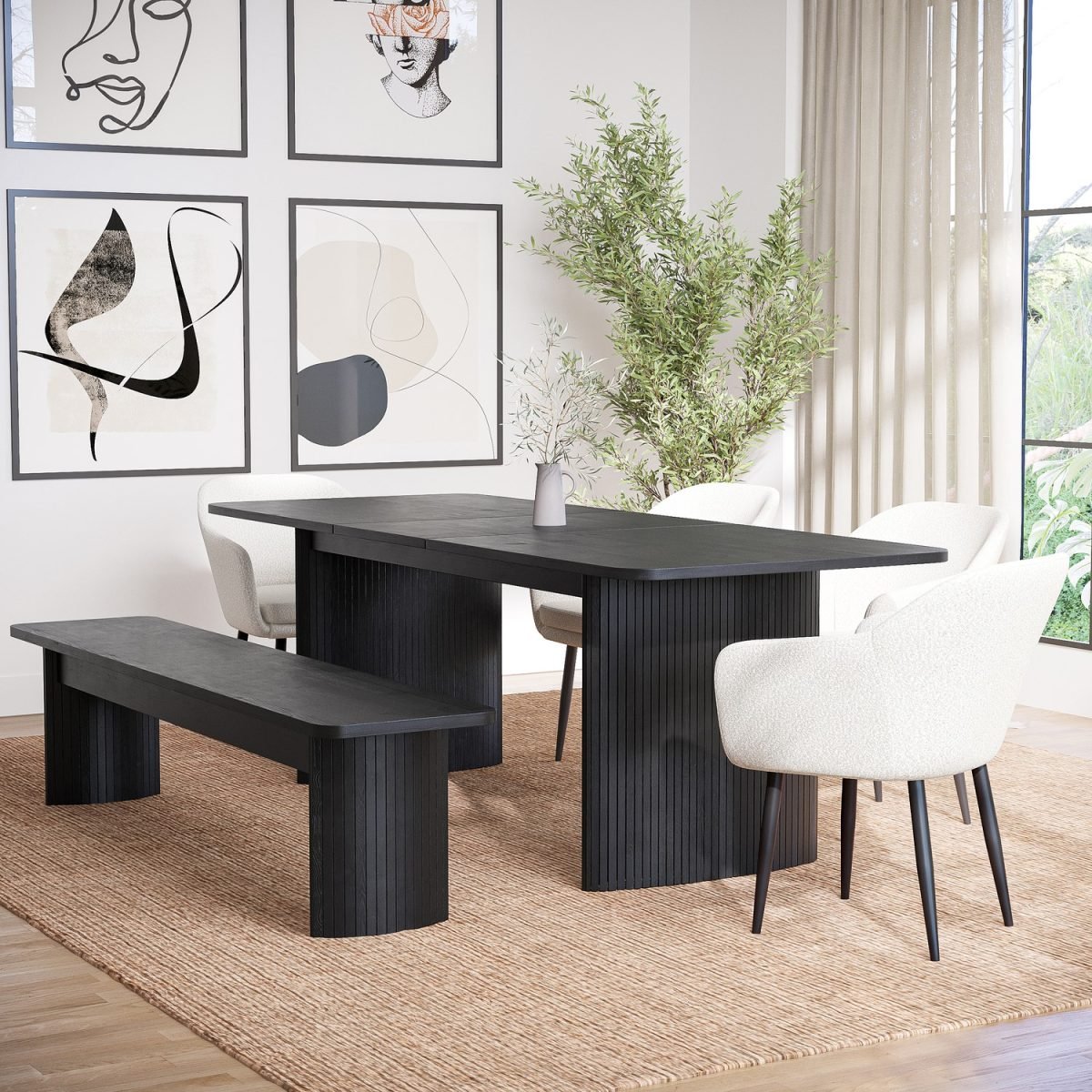 Dining Table Set with 4 Cream Boucle Chairs & 1 Bench – CHDRS010