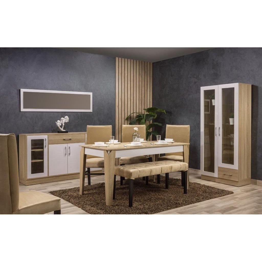 European Union wood and Hammer Dining Room Set 9 pieces Beige and White