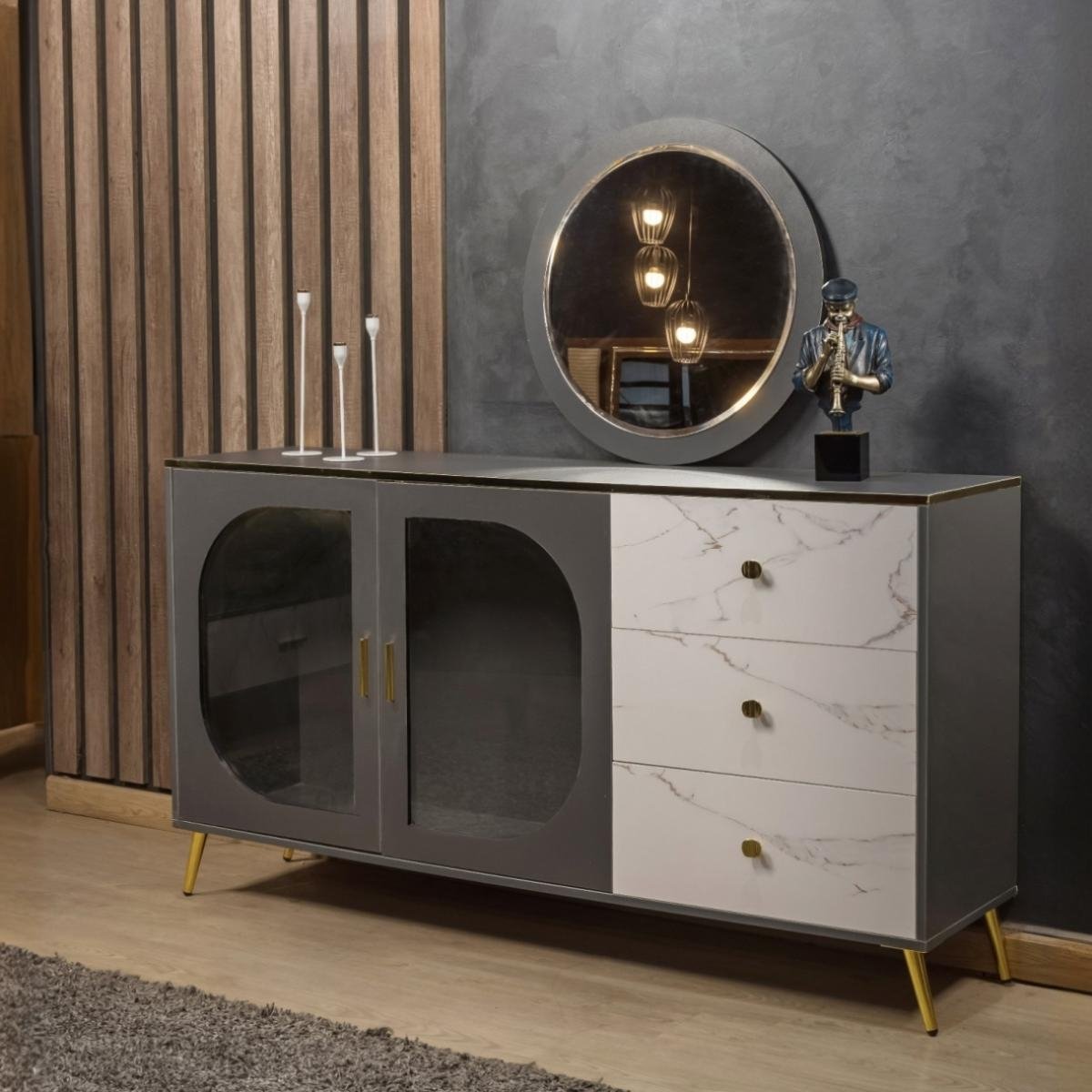 - Des: The legs are beech wood with golden paint and the buffet contains a Shutter with two shelves