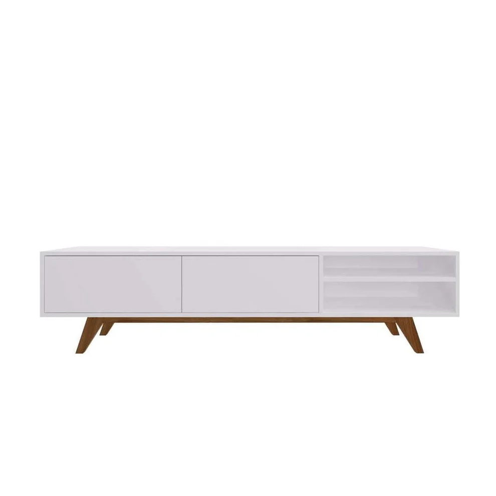With ample storage space, this TV unit provides a convenient solution for organizing your media equipment and accessories. The spacious shelves and compartments allow you to neatly store your gaming consoles, sound systems, DVDs, and more, keeping your living area clutter-free.
