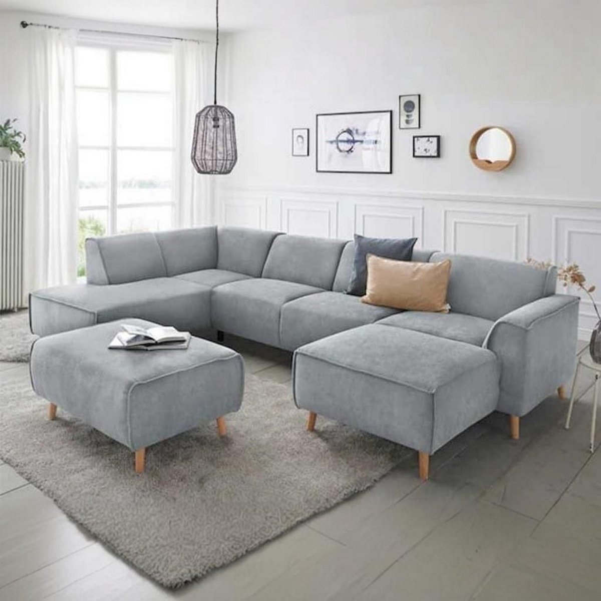 Natural Beech Wood and Velvet Fabric U-Shape Sofa – Grey
