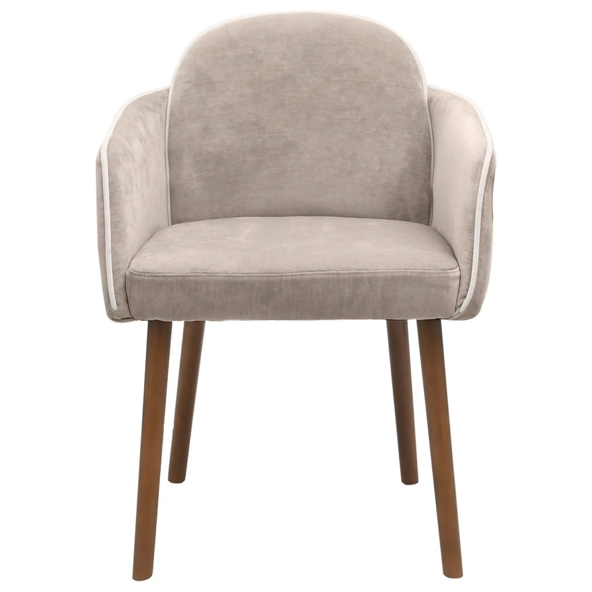 - 4 x Carver Piped Taupe Dining Chairs with Walnut legs
