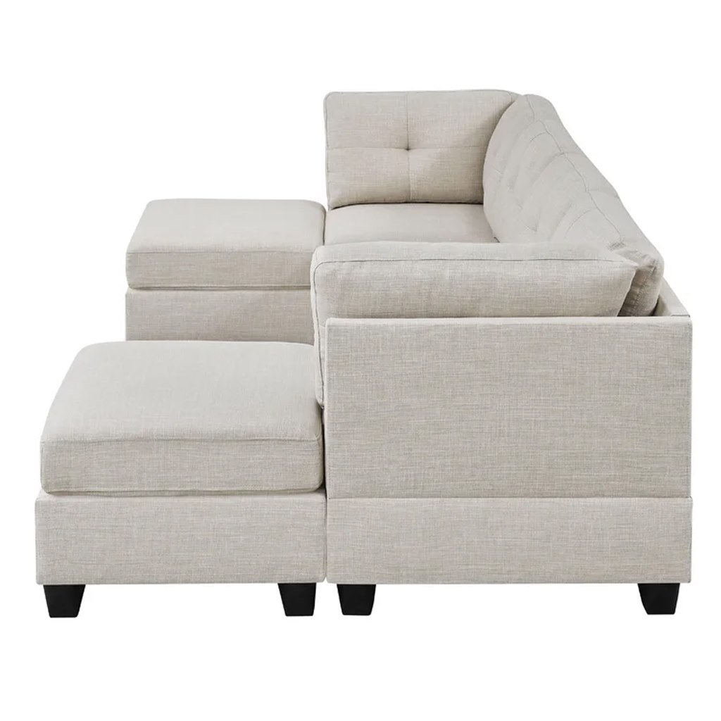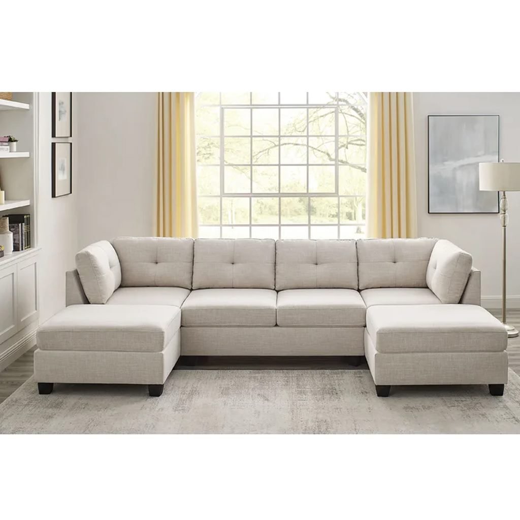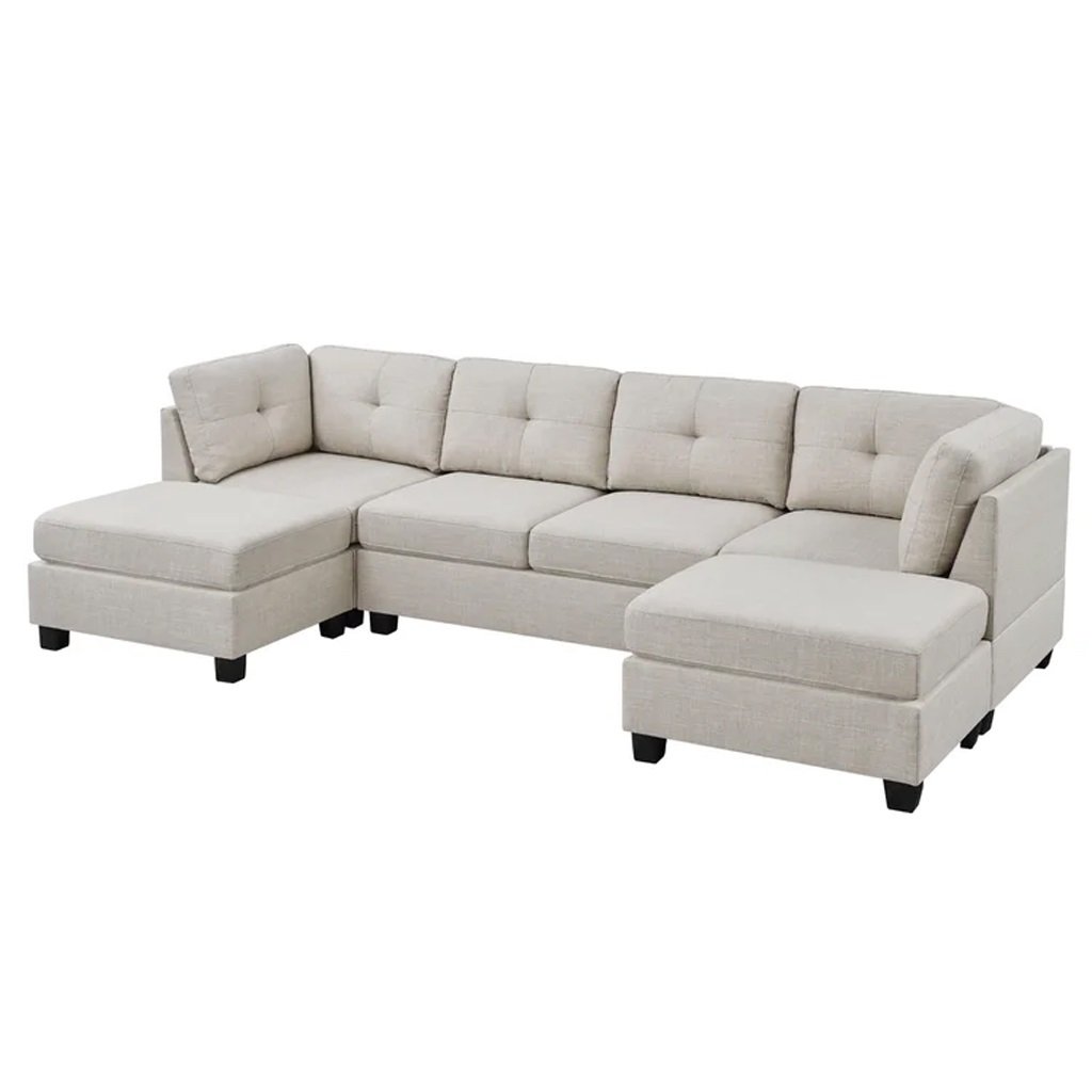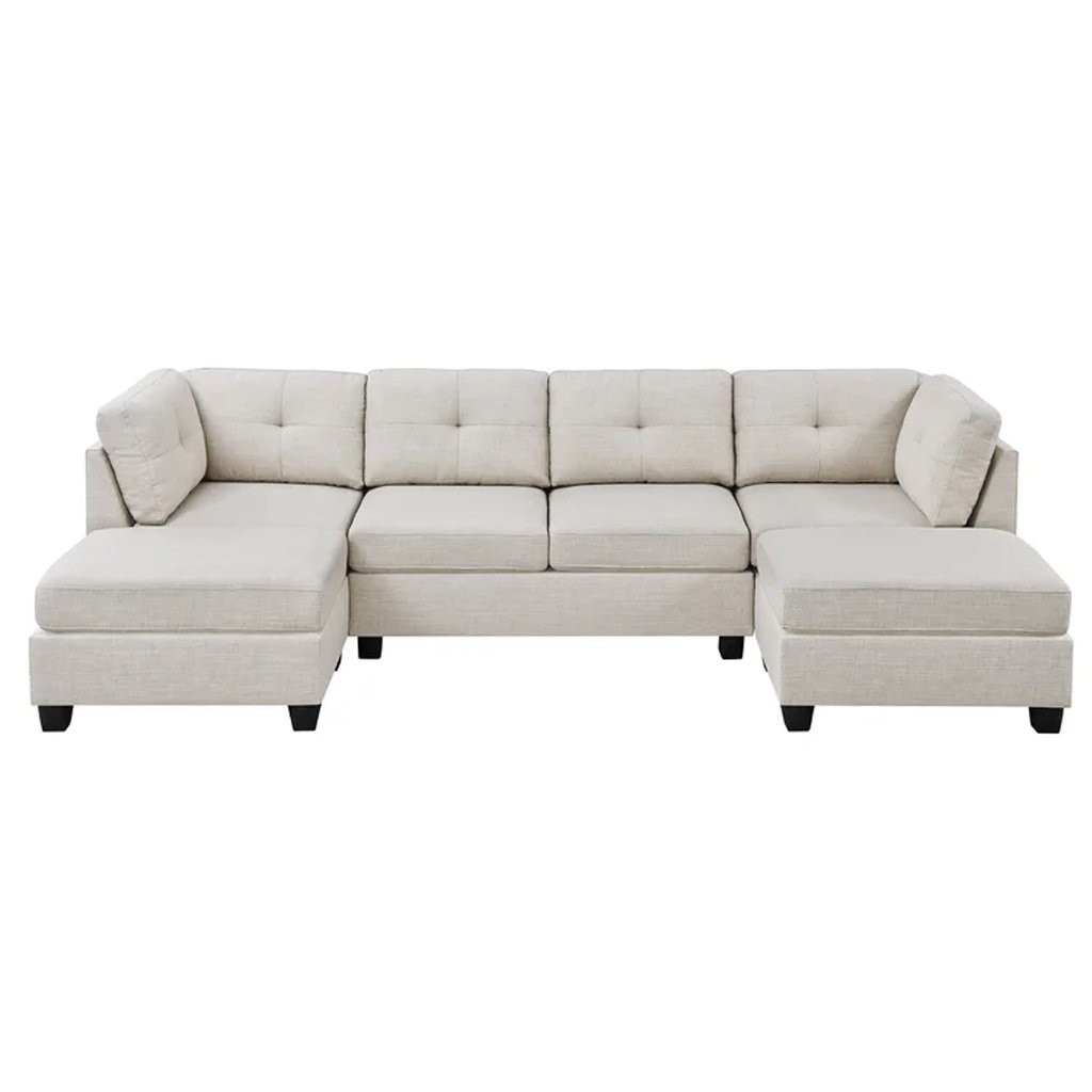 Red Beech Wood and Linen Fabric L-Shape Sofa – Beige