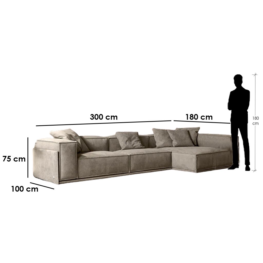Red Beech Wood and Upholstered Leather L-Shape Sofa – Beige