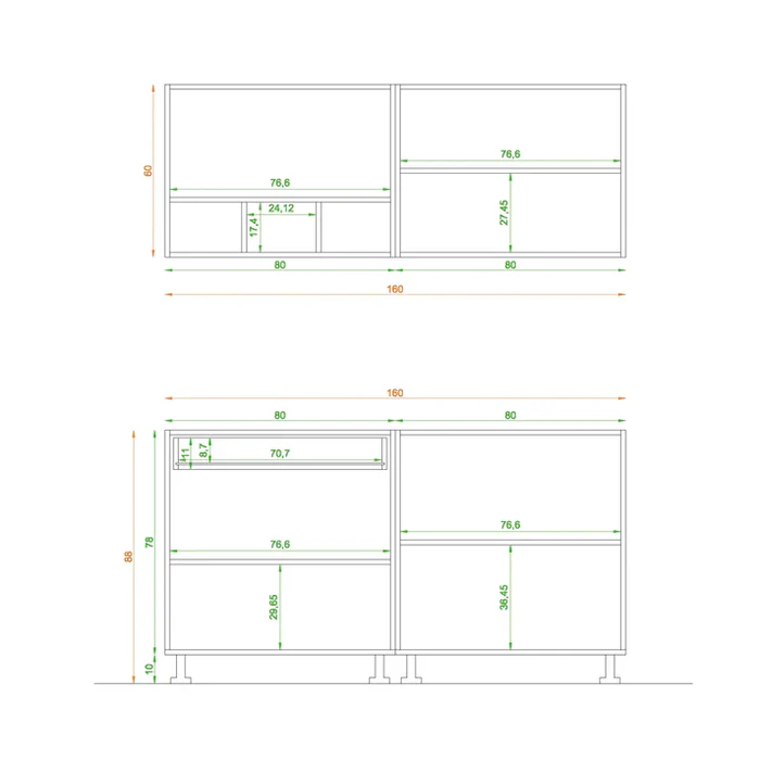 - Material: MDF wood +a layer of melamine + marble
